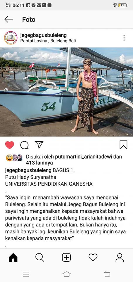 Tahun lalu Ade Yoni Elma menjadi Juara 1 tingkat Nasional Guiding Contest, bulan lalu Wahyu Sastra menjadi The Best Trainee of the Month di Nusa Dua Beach Hotel and Spa, minggu lalu Winda Suparini menjadi mahasiswa berprestasi 2 program Diploma Undiksha, sekarang Hady Suryanatha menjadi Bagus Buleleng (runner up). Dan sekarang mahasiswa kami sedang siap-siap ikut Guiding Contest Nasional lagi. Semoga bisa maksimal. Grit and Glory Eforism!