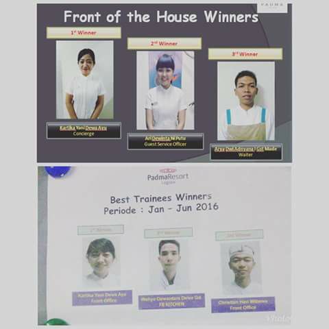Selamat kepada Kartika Yani DA, menjadi the first winner dalam kompetisi antar karyawan di Padma Resorts Legian. Waktu training menjadi The Best Trainee, saat kerja jadi The First Winner, kami sangat bangga memiliki alumni seperti Kartika.