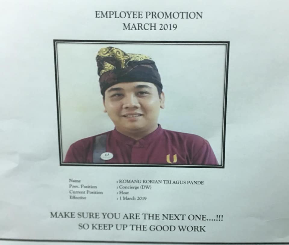 Komang Roryan Tri Agus Pande, Diterima Menjadi Concierge di Hotel Upaasha Seminyak sebelum Wisuda