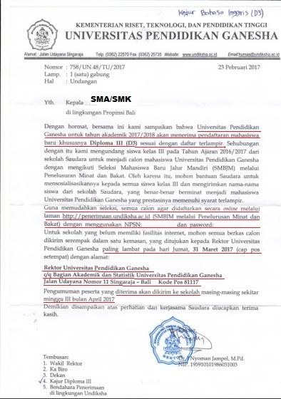 GABUNGLAH DENGAN JURUSAN D3 BAHASA INGGRIS UNDIKSHA . (Paling lambat tanggal 31 Maret 2017)